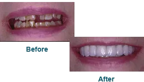 This Extreme Smile Makeover required only one tooth extraction and no root canals! Wow, what a difference!!!