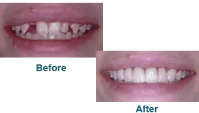 A porcelain bridge and porcelain veneers gave this patient a new outlook on life!